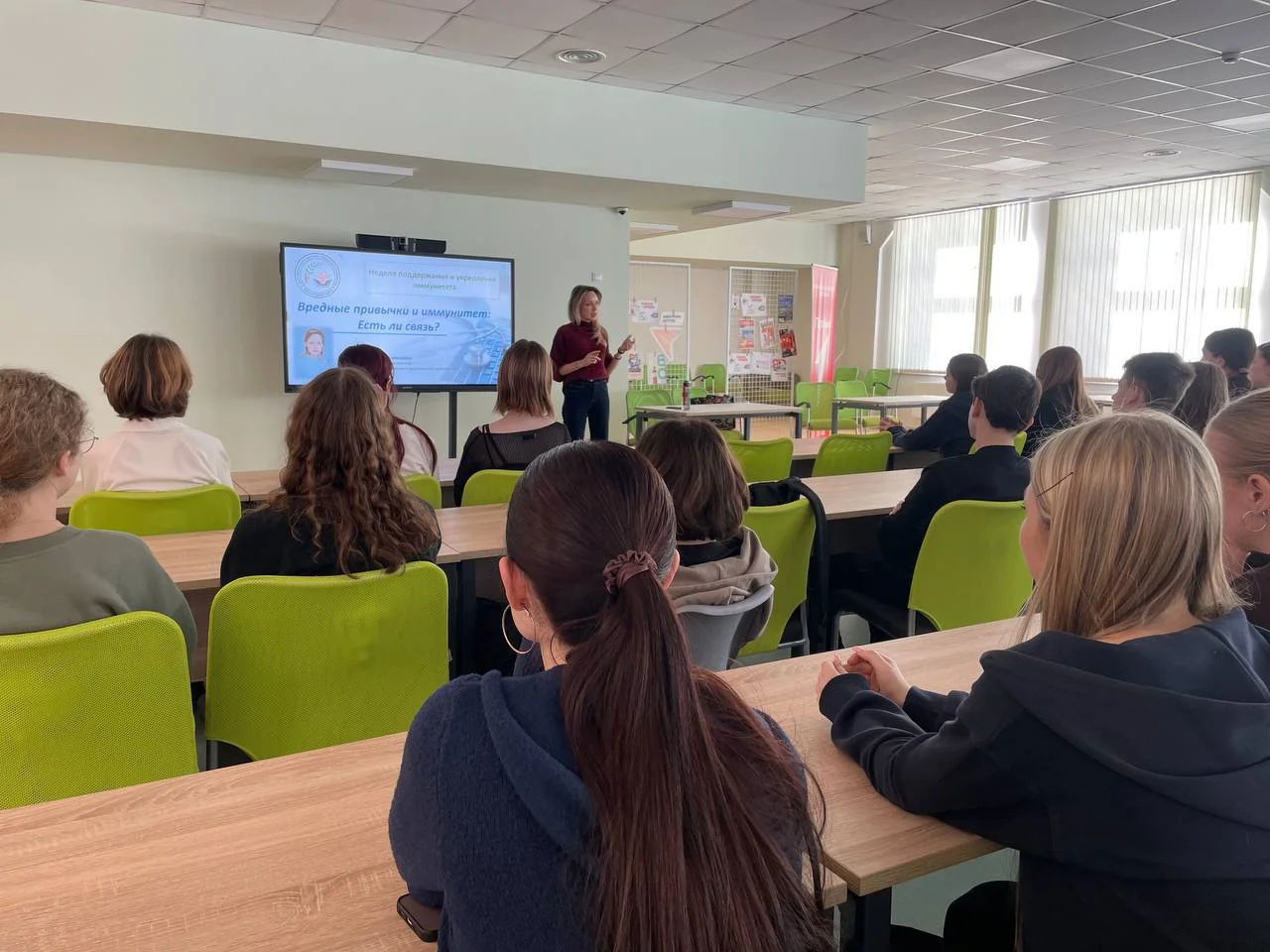 Связаны ли алкоголь и иммунитет? Конечно, о чем рассказала диетолог Шаповалова в гимназии 40 на аудиторию 9 классников