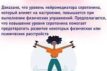 Физическая активность может положительно влиять на психическое здоровье человека, выполнение физических упражнений приводит к снижению тревожности, депрессии, улучшению настроения и когнитивных функций, повышению самооценки.