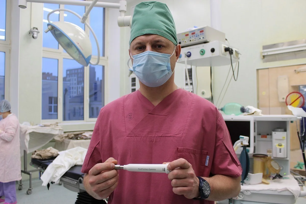 Как рассказал врач-онколог, кандидат медицинских наук Олег Петренко, благодаря введенному заранее радиовеществу и специальному датчику, который реагирует на его излучение в конкретном участке ткани подмышечной области при выполнении операции, появилась возможность точнее и быстрее выявить пораженные участки молочной железы и максимально сократить травматическое воздействие на подмышечную область, которое вызывает очень много проблем у женщин в послеоперационном периоде.
