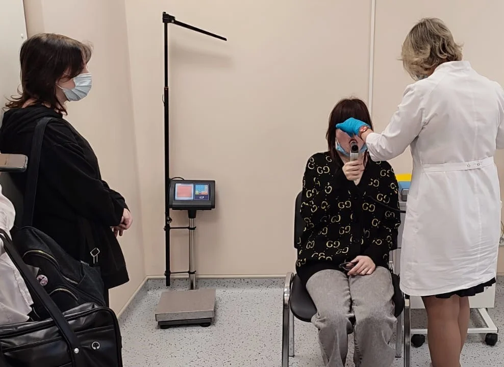 Руководитель структурного подразделения четвертой горбольницы Ксения Каневская показала школьникам работу отделения профилактики, функциональной и лучевой диагностики. Экскурсанты узнали о возможностях и преимуществах современного «тяжелого» оборудования – рентген-аппарата, флюорографа, маммографа. Для наглядности одному подростку выполнили УЗ-диагностику щитовидной железы, второму измерили функцию внешнего дыхания на специальном приборе - спирометре.